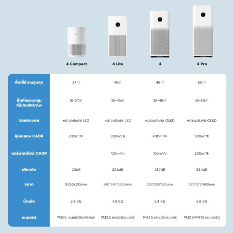 รุ่น/ซีรีส์: เครื่องฟอกอากาศอัจฉริยะ Xiaomi 4 Pro (ติดตั้งฟิลเตอร์ไว้ล่วงหน้า)