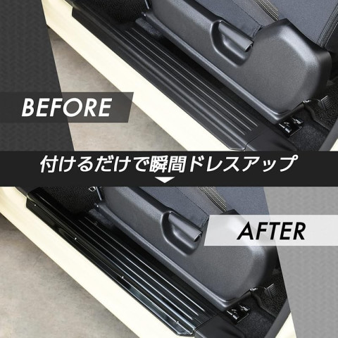 Seiwa Scuff Plate Side Step Guard IMP172 อุปกรณ์เสริมเฉพาะสำหรับ Suzuki Jimny & Sierra (JB64/JB74) ช่วยปกป้องขอบบันไดขึ้น-ลงฝั่งคนขับและผู้โดยสารจากรอยขีดข่วนและรอยถลอกที่เกิดขึ้นในชีวิตประจำวัน เพิ่มความพรีเมียมให้ตัวรถด้วยผิว Metal Black บนวัสดุสแตนเลส แข็งแรง ทนทาน และดูเข้ากับสไตล์ออฟโรดได้อย่างลงตัว