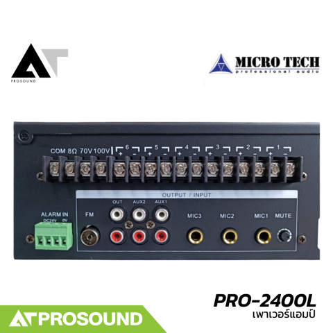 MICROTECH PRO-2400L เพาเวอร์แอมป์มีแมทชิ่งไลน์ แยกได้ 6 โซน กำลังขับ 240 วัตต์ จาก AT Prosound ออกแบบมาเพื่อระบบเสียงประกาศและเสียงตามสายโดยเฉพาะ รองรับทั้งระบบ 70/100V สำหรับเดินไลน์ไกล และโหมด 8Ω สำหรับลำโพงทั่วไป ช่วยให้คุณควบคุมเสียงแต่ละพื้นที่ได้อย่างเป็นอิสระ เหมาะกับสถานที่ที่ต้องการความชัดเจนและความเสถียรของเสียงตลอดวัน