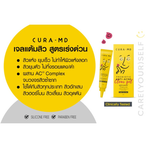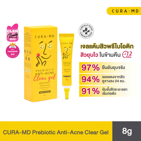 [ขายดี] CURA-MD Prebiotic Anti-Acne Clear Gel 8 กรัม เจลแต้มสิวสูตรเร่งด่วน ช่วยลดสิวอักเสบ บวมแดง ให้สิวยุบไวแบบเฉพาะจุด พร้อมดูแลผิวให้แข็งแรงขึ้นโดยไม่ทิ้งรอยดำ-รอยแดง เหมาะสำหรับคนเป็นสิวทุกประเภท ใช้ง่าย พกพาสะดวก ใช้ได้ทั้งกลางวันและก่อนนอน
