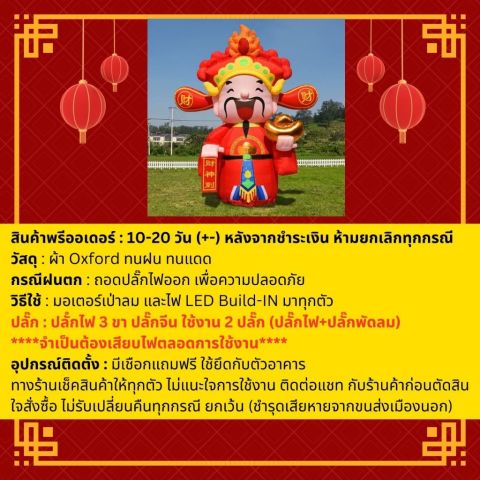 【ตรุษจีน🪭 2026】🏮ตุ๊กตาเป่าลม Chinese New Year เทพเจ้าแห่งความมั่งคั่ง (ไฉ่ซิงเอี๊ย) ขนาด 4 เมตร ราคา 14,000.00 บาท