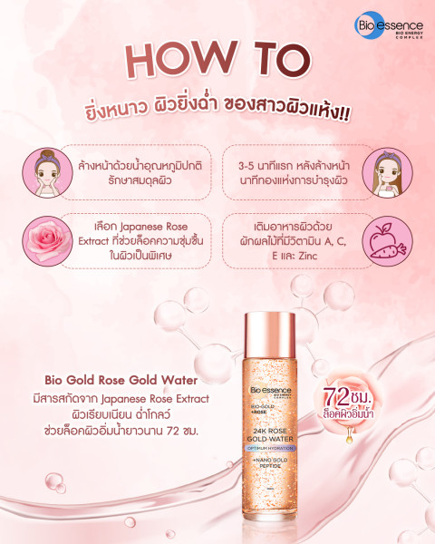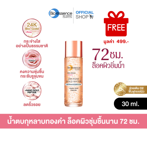 (Not For Sale) Bio-essence Bio-Gold 24k Rose Gold Water 30 ml. สินค้าสมนาคุณ เอสเซ้นส์น้ำตบสูตรเข้มข้นด้วย Nano Gold Peptide ผสาน Bio Energy Complex และ Bio-Gold Rose Gold Water เติมพลังความชุ่มชื้นให้ผิวแบบเร่งด่วน พร้อมดูแลริ้วรอยและรูขุมขน ให้ผิวดูนุ่มเด้ง เรียบเนียน และกระจ่างใส เหมาะสำหรับใช้เป็นสกินแคร์ขั้นตอนแรก หรือเป็นตัวช่วยเตรียมผิวก่อนแต่งหน้า