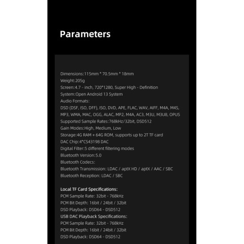 มาพร้อมชิปแอมป์ SGM8262 คู่ ให้แรงขับสูงสุดประมาณ 800mW @ 32Ω เหมาะทั้งหูฟังอินเอียร์และหูฟังครอบหูที่ต้องการกำลังขับมากขึ้น พร้อมคงความใสและคอนโทรลเสียงที่ดีAndroid 13 แบบเปิด + AGLO ฟังสตรีมมิ่งก็เสียงดี