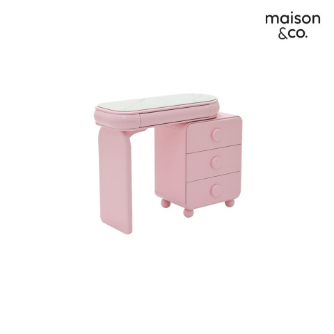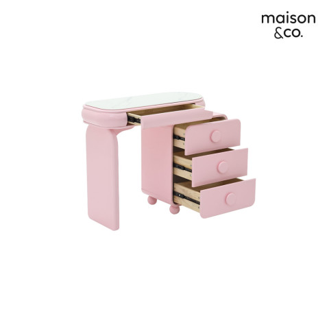 SB Design Square โต๊ะเครื่องแป้งแบบนั่ง รุ่น Hugsy สีชมพู จากแบรนด์ MAISON&CO. เติมความละมุนให้ห้องนอนของคุณด้วยโต๊ะเครื่องแป้งดีไซน์ทันสมัย โทนสีชมพูสดใส พร้อม กระจกปรับไฟ LED ช่วยให้แต่งหน้าได้แม่นยำทั้งกลางวันและกลางคืน และ ลิ้นชักขนาดใหญ่ ที่เก็บของได้จุใจ จัดระเบียบเครื่องสำอางและอุปกรณ์ดูแลตัวเองให้เป็นสัดส่วน ใช้วัสดุคุณภาพสูง แข็งแรงทนทาน เหมาะสำหรับใช้งานทุกวันอย่างมั่นใจ