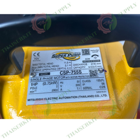 MITSUBISHI ปั๊มแช่ดูดโคลน 3" รุ่น CSP-755S (750W, 220V) ปั๊มจุ่มสำหรับงานหนัก ออกแบบมาเพื่อการสูบน้ำเสีย/น้ำที่มีตะกอนและเศษวัสดุได้อย่างมีประสิทธิภาพ เหมาะทั้งงานโรงงาน อาคารบ้านเรือน ฟาร์มเลี้ยงปลา บ่อกุ้ง ฟาร์มสัตว์ และงานสูบน้ำทะเล มั่นใจได้ด้วยสินค้า ของแท้ 100% พร้อมส่ง และรับประกัน 1 ปี ในราคา 10,540.00 บาท