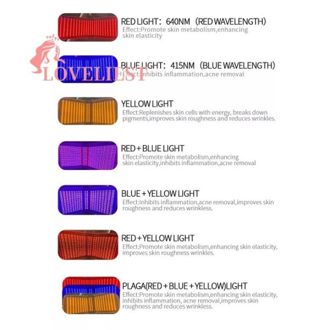 แสงสีฟ้า (415nm): เหมาะสำหรับผิวมันและผิวเป็นสิว ช่วยดูแลปัญหาสิวและปลอบประโลมผิว