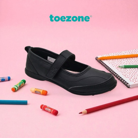 Toezone รุ่น BERKELEY YT BLACK/ BLACK รองเท้าเด็ก (รองเท้านักเรียนสำหรับเด็กผู้หญิง) ราคา 1,077.00 บาท ดีไซน์เรียบเท่สีดำล้วน ใส่ง่าย เข้ากับชุดนักเรียนและชุดพละได้ลงตัว เหมาะสำหรับวันเรียนที่ต้องเดินเยอะ วิ่งเล่นเยอะ แต่ยังคงความสบายและความทนทานในทุกก้าวของเจ้าตัวเล็ก