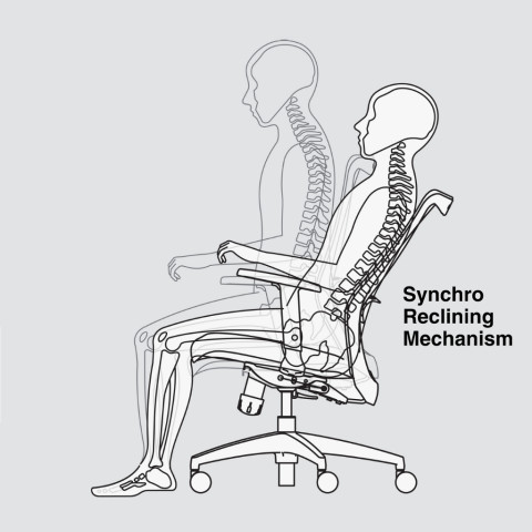 Synchro Reclining พนักพิงทรงโค้งรองรับแนวกระดูกสันหลัง เอนอย่างสมดุลและสามารถล็อกตำแหน่งเพื่อความผ่อนคลาย
