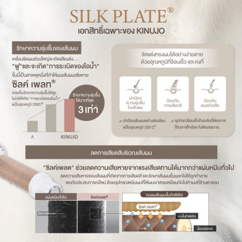 นวัตกรรม SILK PLATE ช่วยปกป้องความชุ่มชื้น ลดความเสียหายจากความร้อน และให้ผมเงางามดุจเส้นไหม (ผ่านการพิสูจน์มากกว่า 3 ล้านครั้ง*)