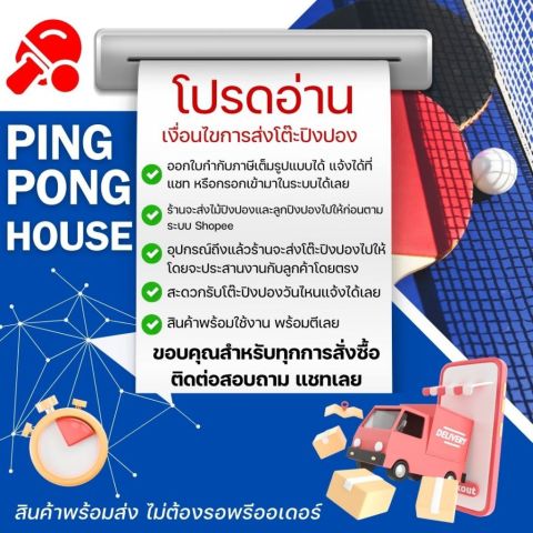 หมายเหตุ: สั่งแล้วรบกวนทักหาแอดมินเพื่อประสานงานการจัดส่งโต๊ะปิงปองให้รวดเร็วที่สุด