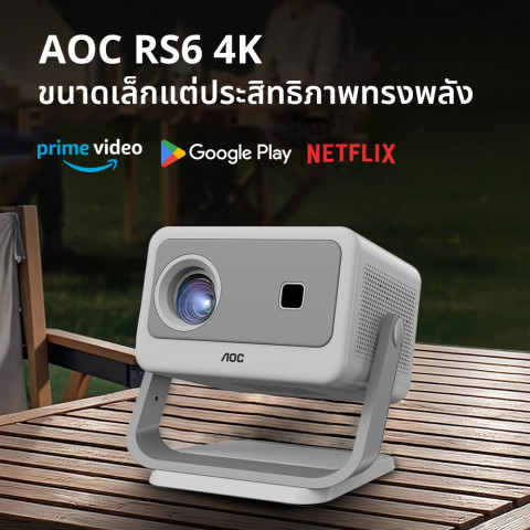 AOC RS6 โปรเจคเตอร์รองรับการถอดรหัส 4K (FHD) โปรเจคเตอร์ขนาดเล็กระบบ Android ที่เปลี่ยนห้องนั่งเล่นให้เป็นโรงภาพยนตร์ในบ้านได้ทันที มาพร้อมการแก้ไขภาพบิดเบือนอัตโนมัติ โฟกัสไฟฟ้า และการเชื่อมต่อไร้สายครบทั้ง WiFi (2.4G/5G) + Bluetooth รองรับการแคสต์หน้าจอจากมือถือ iOS/Android ดูคอนเทนต์ได้สะดวกด้วยแอปยอดนิยมที่ติดตั้งมาให้ เช่น Netflix, YouTube, Google พร้อมเมนู ภาษาไทย เหมาะทั้งดูหนัง เล่นเกม พรีเซนต์งาน และพกพาไปใช้นอกสถานที่