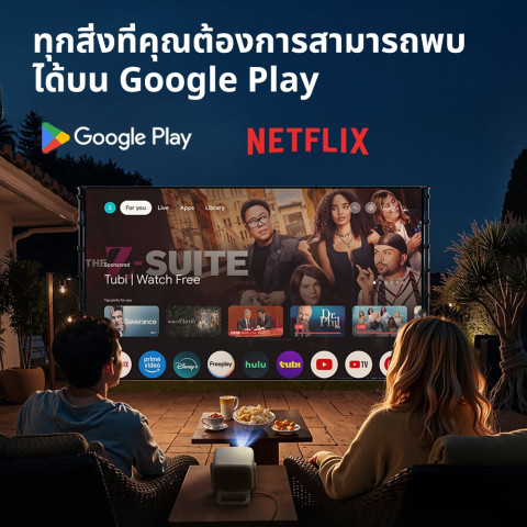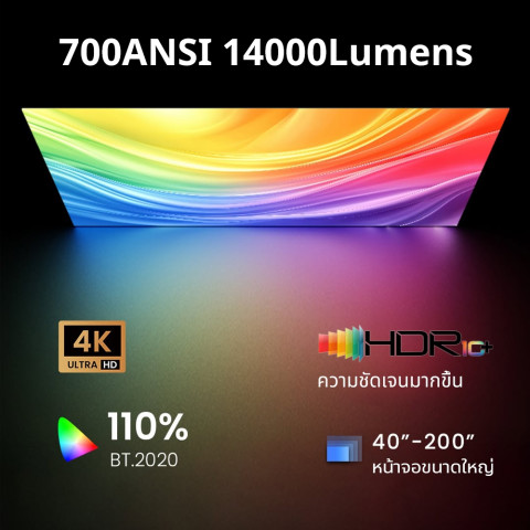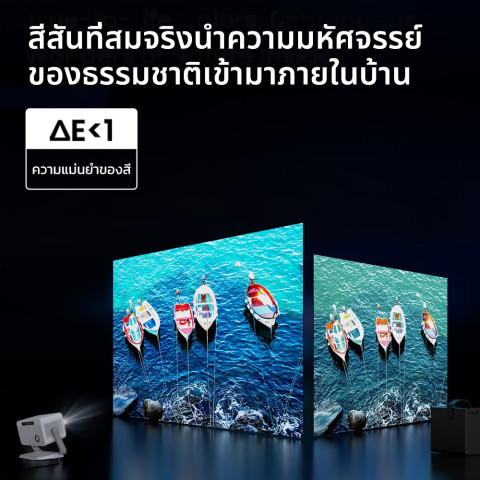 จอใหญ่สะใจ: ฉายได้ยืดหยุ่นประมาณ 40–150 นิ้ว เปลี่ยนผนังให้เป็นจอหนังได้ในไม่กี่วินาที