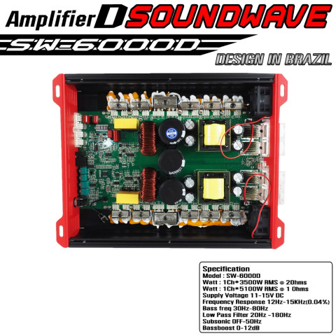 SOUNDWAVE SW-6000D เพาเวอร์แอมป์บราซิล Class D 1CH พลังขับหนักแน่นสำหรับสายซับโดยเฉพาะ ขับซับวูฟเฟอร์ได้ตั้งแต่ 10 / 12 / 15 นิ้ว ให้เบสแน่น ลึก กระแทกชัด เหมาะทั้งระบบอัปเกรดในรถและงานติดตั้งที่ต้องการกำลังสำรองแบบจัดเต็ม ในราคา 6,902.40 บาท