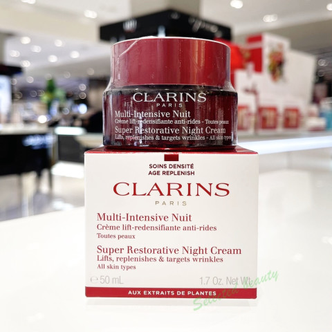 Clarins Super Restorative Night Cream 50ml ครีมบำรุงผิวสำหรับกลางคืนสูตรเข้มข้น เหมาะสำหรับทุกสภาพผิว (All Skin) พร้อมฉลากไทย ใช้ช่วงเวลาพักผ่อนตอนกลางคืนช่วยฟื้นบำรุงผิวที่อ่อนล้าจากมลภาวะและความเครียดในแต่ละวัน ให้ผิวดูเรียบเนียน ยืดหยุ่น และเปล่งปลั่งขึ้นอย่างเป็นธรรมชาติ