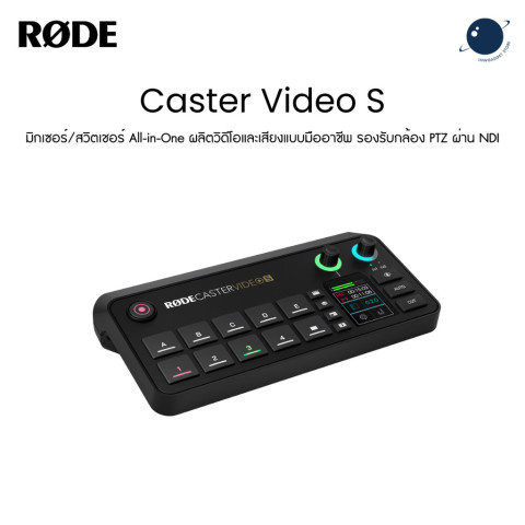 RodeCaster Video S Video and Audio Production Console มิกเซอร์/สวิตเชอร์แบบ All-in-One สำหรับสายไลฟ์ สตรีม พอดแคสต์ และงานโปรดักชันที่ต้องการทั้ง “ภาพ+เสียง” แบบจบในเครื่องเดียว มาพร้อมการรับประกันศูนย์ไทย ในราคา 34,875.00 บาท ตอบโจทย์ตั้งแต่งานสตูดิโอขนาดเล็ก ไปจนถึงงานถ่ายทำหลายกล้องที่ต้องการความคล่องตัวและคุณภาพระดับมืออาชีพ