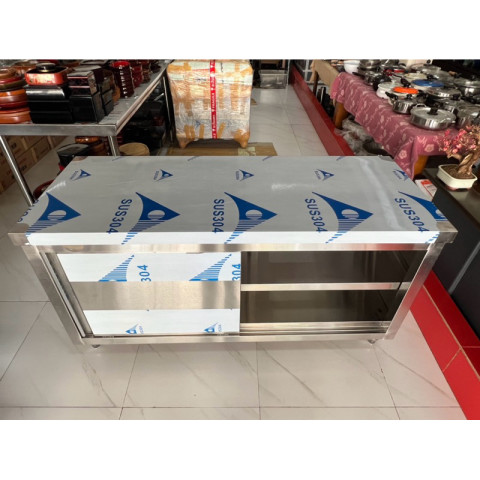 โต๊ะตู้สแตนเลสงานครัวระดับมืออาชีพ ผลิตจากสแตนเลสแท้ เกรด 304 หนา 1 มม. แข็งแรง ทนสนิม ดูแลรักษาง่าย เหมาะทั้งร้านอาหาร ครัวกลาง โรงงาน หรือบ้านที่ต้องการโต๊ะเตรียมอาหารที่ทนงานหนัก ใช้งานได้นาน และดูเรียบสวย