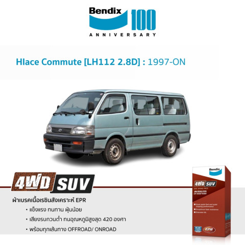 ผ้าเบรค Bendix สำหรับ Toyota Hiace Commute (LH112 2.8D) ปี 1997-ON ราคา 2,108.00 บาท