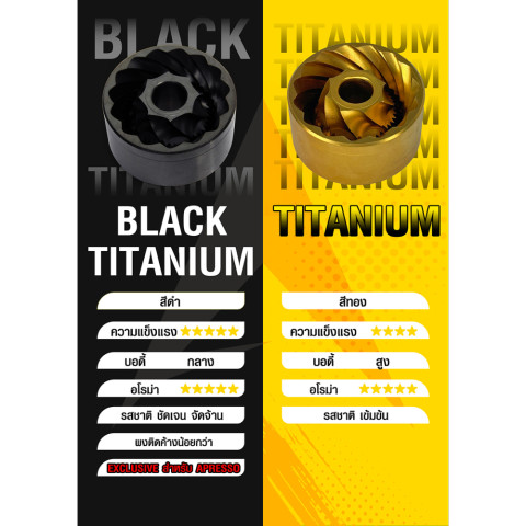 คุณสมบัติเด่น: บดสม่ำเสมอ / ระบายความร้อนได้ดี / ผงไม่เกาะ / เฟืองทนทาน / ได้รสชาติสะอาด