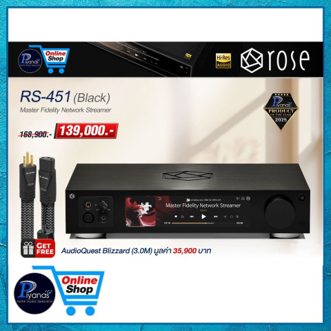 HIFI ROSE : RS-451 NETWORK STREAMER (BLACK)/(SILVER) จาก Piyanas electric/ปิยะนัส อิเล็คทริคส์ คือ Network Streamer ระดับพรีเมียมที่ออกแบบมาเพื่อการฟังเพลงความละเอียดสูงอย่างแท้จริง ให้รายละเอียดเสียงคมชัด เวทีเสียงเป็นชั้นเชิง และโทนดนตรีมีความเป็นธรรมชาติ เหมาะสำหรับผู้ที่ต้องการยกระดับระบบเครื่องเสียงบ้านให้เข้าถึงคุณภาพแบบออดิโอไฟล์ในเครื่องเดียวที่ทั้งสวยและใช้งานง่าย