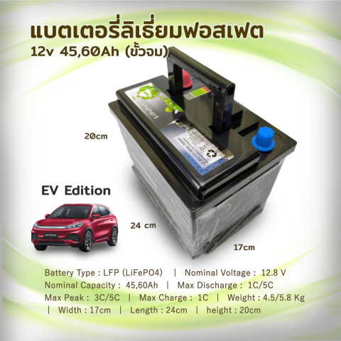 LiFePo4 12V 45Ah แบตเตอรี่ลิเธี่ยมฟอสเฟต สำหรับรถไฟฟ้า EV ทางเลือกแบตเตอรี่ที่ทั้งเบา อึด และปลอดภัย เหมาะสำหรับงานรถไฟฟ้า/ระบบไฟ 12V ที่ต้องการความเสถียร ใช้งานได้นานกว่าแบตแห้ง 5-10 เท่า พร้อมกล่องกันน้ำระดับ IP65 ใช้งานได้มั่นใจทั้งในเมืองและสภาพแวดล้อมที่มีความชื้น