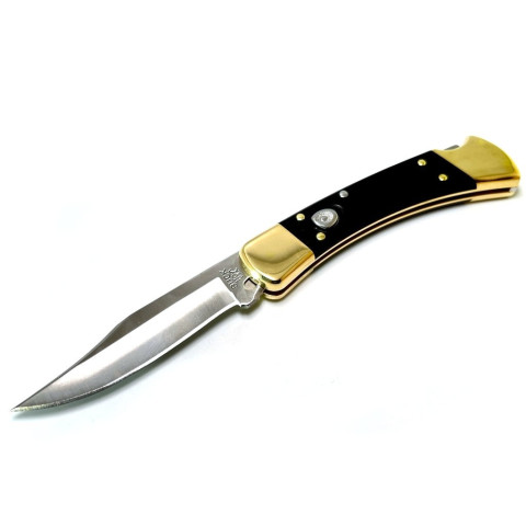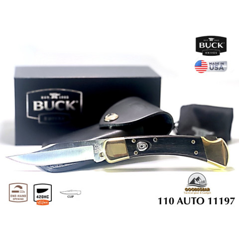 มีดพับ Buck 110 Auto, Ebony Wood Handles (0110BRSA-B) คือเวอร์ชันออโต้ของตำนาน 110 Folding Hunter ที่ได้รับความนิยมสูงในอเมริกา ผลิตในสหรัฐอเมริกา (Made in USA) โดดเด่นด้วยการเปิดใช้งานแบบกดปุ่มเพียงครั้งเดียว ให้ความรวดเร็ว มั่นใจ และพร้อมใช้งานทันที เหมาะทั้งสำหรับงานภาคสนาม งานตัดที่ต้องการความแม่นยำ หรือเก็บสะสมเป็นไอเทมคลาสสิกระดับพรีเมี่ยม