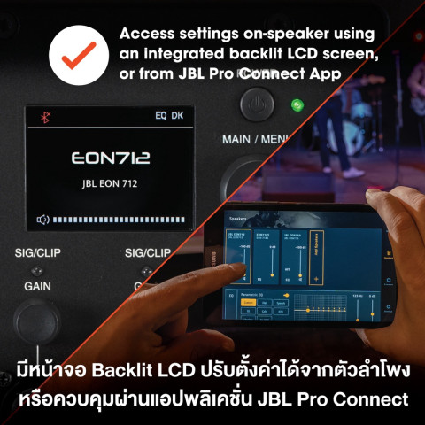 ตัว JBL EON712 มาพร้อม ภาคขยายในตัว ช่วยให้เซ็ตอัพได้รวดเร็ว พกพาสะดวก และใช้งานง่าย พร้อม Bluetooth ในตัว สำหรับสตรีมเพลงแบบไร้สาย และรองรับงานใช้งานที่ต้องการความคล่องตัวสูง โดยยังคงความเป็น “ลำโพง PA มืออาชีพ” ที่ให้การกระจายเสียงและความชัดเจนยอดเยี่ยม