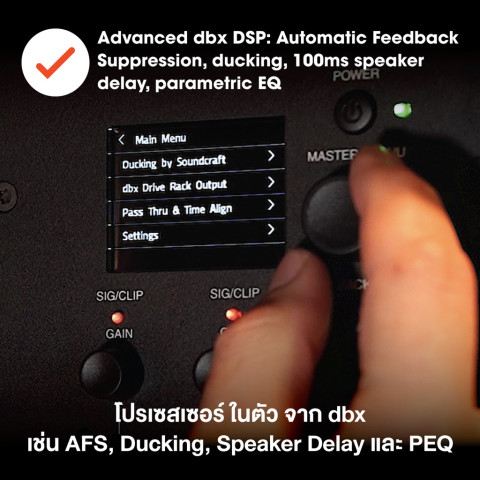 ระบบภายใน: มิกเซอร์พร้อมแอมป์ในตัว / DSP ขั้นสูง