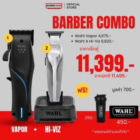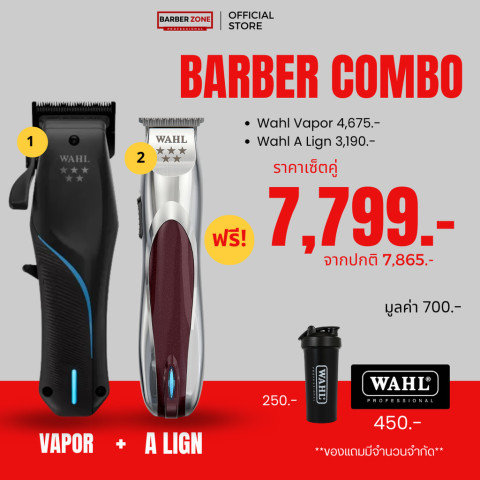 Barber Set ซื้อคู่ คุ้มกว่า! เซ็ตคู่สุดคุ้มสำหรับช่างตัดผมและคนรักงานเฟด ที่รวมไอเทมตัวท็อปไว้ในชุดเดียว Wahl Vapor + A Lign พร้อมรับ ของแถมฟรี 2 รายการ ช่วยให้การตัดแต่งคมกริบ เก็บงานเนียน และทำงานได้เร็วขึ้นในทุกวัน
