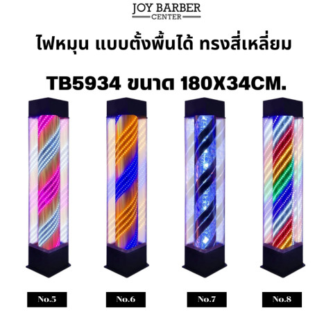 ไฟหมุนแบบตั้งพื้น กรอบกระจก รุ่น TB5934 (สูง 180 ซม.) ไอเท็มสำคัญที่ช่วยเพิ่มความโดดเด่นให้หน้าร้านตัดผม/ร้านเสริมสวย มองเห็นชัดสะดุดตาทั้งกลางวันและกลางคืน ดีไซน์แบบตั้งพื้นพร้อมกรอบกระจก ให้ลุคพรีเมียม ดูเนี้ยบเหมาะกับหน้าร้านทุกสไตล์