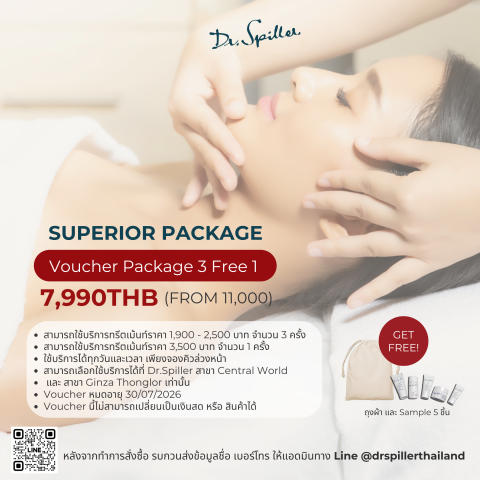 Dr.Spiller Superior Solutions Treatment 3 ครั้ง ฟรี Exclusive Solutions 1 ครั้ง ในราคาเพียง 7,990.00 บาท ให้คุณดูแลผิวแบบจัดเต็มด้วยแพ็กเกจสุดคุ้ม ซื้อ 3 ฟรี 1 มูลค่ารวมปกติ 11,000 บาท ประหยัดทันทีประมาณ 27% เหมาะสำหรับคนที่ต้องการยกระดับการบำรุงผิวอย่างต่อเนื่อง พร้อมรับของแถมสุดพิเศษกลับบ้าน