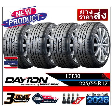 225/55R17 DAYTON DT30 (ผลิตปี 2025) ยางใหม่แท้ 100% ส่งฟรีทั่วประเทศ พร้อมตัวเลือกชุด 2 เส้น หรือ 4 เส้น เหมาะสำหรับผู้ที่ต้องการยางคุณภาพมาตรฐานโรงงาน ขับนุ่ม เงียบ เกาะถนนดี โดยเฉพาะบนถนนเปียก คุ้มค่า ใช้งานได้ยาวนาน