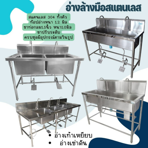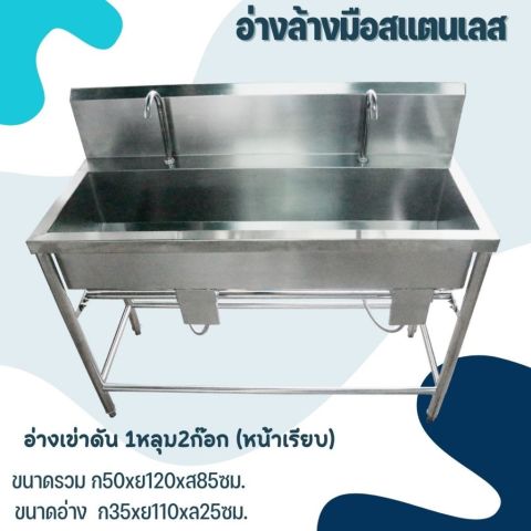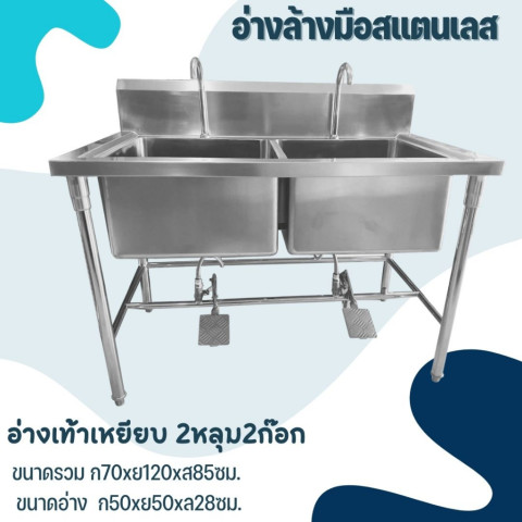 CS อ่างล้างมือสแตนเลส เกรด 304 แบบเท้าเหยียบ/เข่าดัน (Hands-free) แข็งแรง ไม่เป็นสนิม เหมาะสำหรับร้านอาหาร ครัวกลาง โรงงานอาหาร คลินิก และพื้นที่ที่ต้องการความสะอาดสูง ลดการสัมผัสก๊อกด้วยมือ ช่วยเพิ่มมาตรฐานสุขอนามัยในการใช้งานจริง