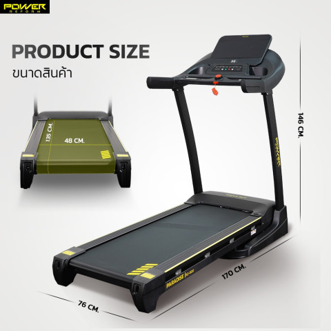 ขนาดสายพาน/พื้นที่วิ่ง: กว้าง 48 ซม. x ยาว 135 ซม.