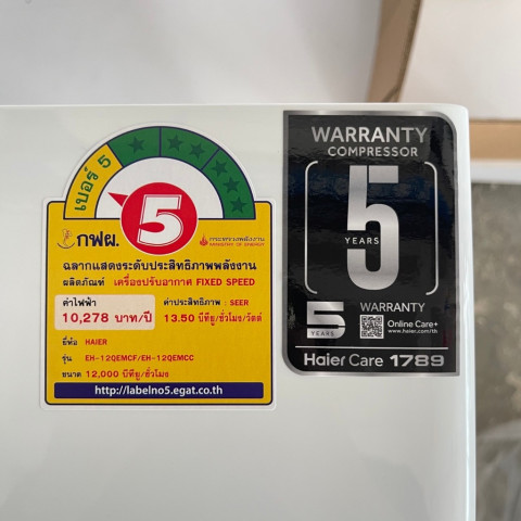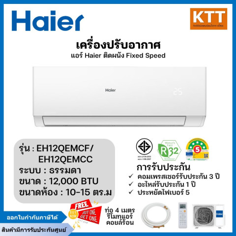Haier แอร์ผนัง Fixed Speed 12,000 BTU รุ่น EH-12QEM/EH-12QEMC (ไม่รวมติดตั้ง) ราคา 11,990.00 บาท