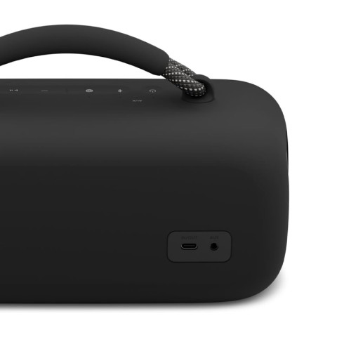 ฟังเพลงได้ยาวนานเกือบทั้งวัน ชาร์จสะดวกผ่าน USB-C และยังสามารถใช้ลำโพงเป็นแหล่งพลังงาน ชาร์จโทรศัพท์ ได้ขณะเปิดเพลง