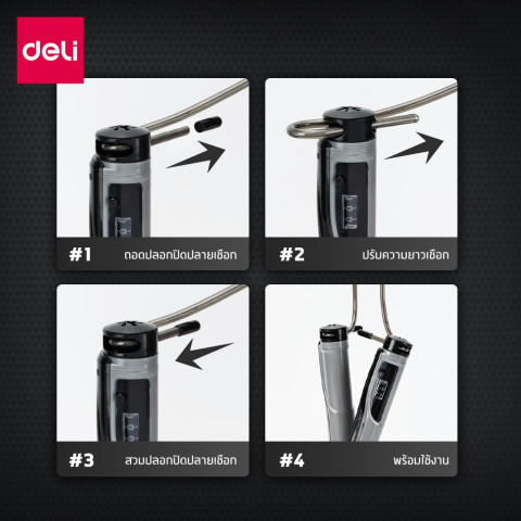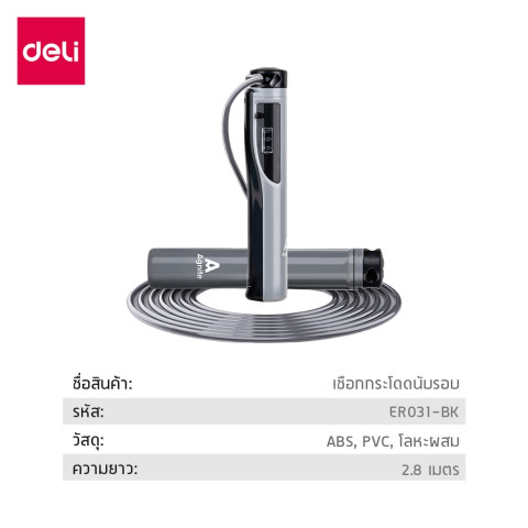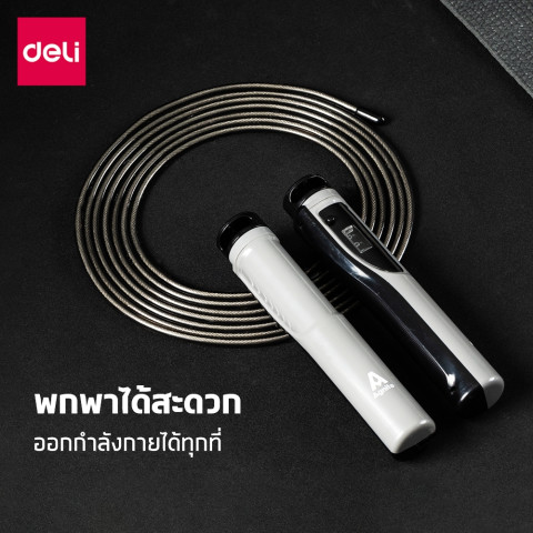 Deli เชือกกระโดดนักมวยพร้อมหน้าปัดนับรอบ รุ่น ER031 / ER037 / ER030 / F4137S / FT145 เชือกกระโดดคุณภาพดีที่จะช่วยยกระดับการออกกำลังกายของคุณให้มีประสิทธิภาพมากยิ่งขึ้น มาพร้อมฟังก์ชันนับรอบกระโดด ปรับความยาวสายได้ ใช้งานได้ทั้งเด็กและผู้ใหญ่ เหมาะสำหรับทั้งสายฟิตเนส ลดน้ำหนัก และผู้ที่ต้องการเสริมความแข็งแรงของกล้ามเนื้อ