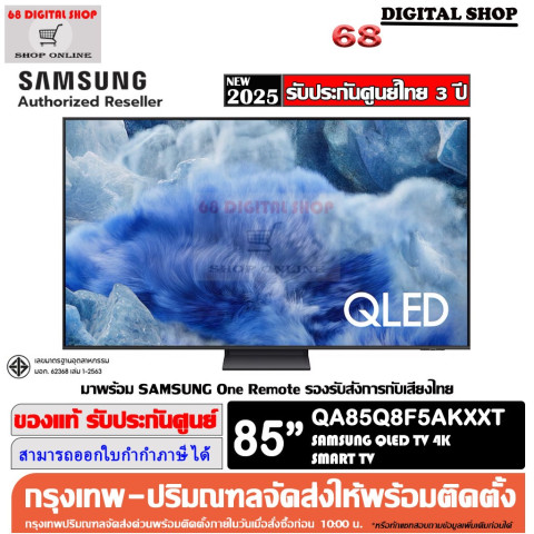 Samsung 85Q8F QLED 4K Smart TV ขนาด 85 นิ้ว รุ่น QA85Q8F5AKXXT คือทีวีระดับพรีเมียมที่รวมเทคโนโลยีภาพและเสียงชั้นนำเข้ากับความฉลาดของ AI เหมาะสำหรับคนรักความบันเทิงที่ต้องการจอใหญ่ สีสันเที่ยงตรง สมจริง เล่นเกมลื่นไหล และดีไซน์หรูบางเฉียบ พร้อมบริการจัดส่ง–ติดตั้ง (กทม. และปริมณฑล) และรับประกันศูนย์ไทย 3 ปี ให้คุณใช้งานได้อย่างมั่นใจในระยะยาว