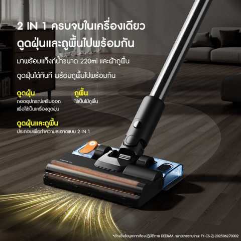 มาพร้อมแท็งก์น้ำสำหรับถูพื้นและแปรงถูพื้น ช่วยให้คุณดูดฝุ่นและถูพื้นได้พร้อมกันในขั้นตอนเดียว ขจัดทั้งฝุ่นแห้งและคราบสกปรกบนพื้นได้ในรอบเดียว ทำความสะอาดได้รวดเร็วและสะดวกยิ่งขึ้นหัวดูดกันพันเส้นผม ใช้งานง่าย ดูแลรักษาสะดวก