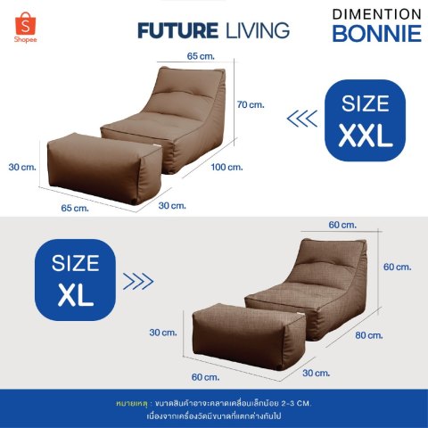 ขนาดบีนแบค: กว้าง 65 x ยาว 95 x สูง 70 ซม.