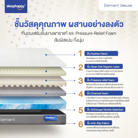 SleepHappy ที่นอนยางพาราแท้ รุ่น Element Deluxe หนา 7 นิ้ว ขนาด 5 ฟุต