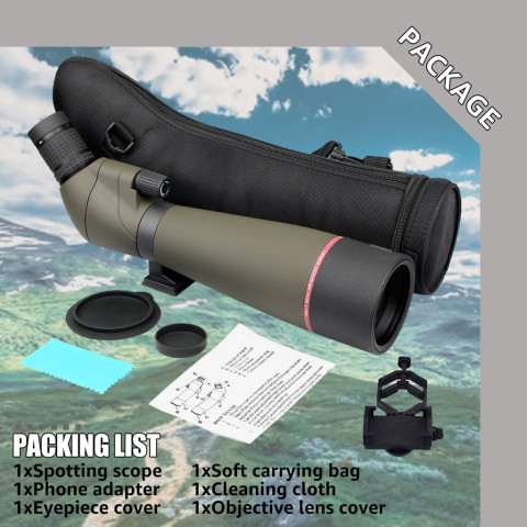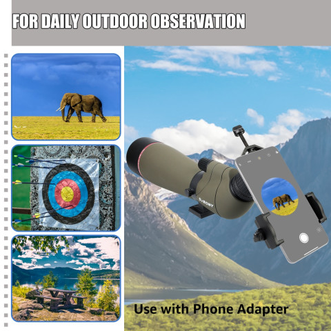 ดื่มด่ำกับรายละเอียดของโลกไกลตัวได้อย่างคมชัดด้วย SVBONY SV13 Spotting Scope กล้องส่องทางไกลกำลังขยายสูงมาพร้อมอะแดปเตอร์โทรศัพท์และขาตั้งกล้องในชุดเดียว เหมาะสำหรับการตั้งแคมป์ ดูนก ยิงธนู ส่องสัตว์ป่า หรือชมวิวไกล ๆ ด้วยภาพคมชัด สว่าง และทนทานต่อสภาพอากาศกลางแจ้ง