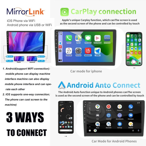 รองรับ Apple CarPlay & Android Auto เชื่อมต่อ iPhone/Android เพื่อใช้งานแผนที่ โทรออก รับสาย ฟังเพลง และข้อความ ผ่านหน้าจอรถอย่างปลอดภัย