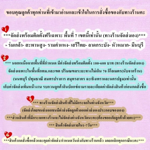 พื้นที่อื่นในกรุงเทพฯ และปริมณฑล มีบริการจัดส่งพร้อมติดตั้งโดยมีค่าบริการเพิ่มเติมตามระยะทาง