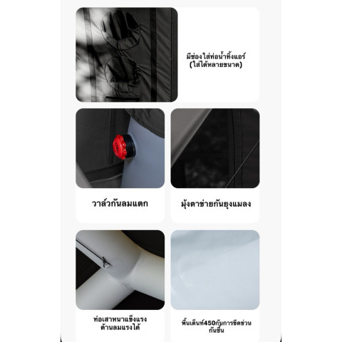 เต็นท์เสาลมขนาด 8.0 กางง่าย ไม่ต้องใช้โครงเสาเหล็กให้ยุ่งยาก เพียงต่อปั๊มลม เต็นท์ตั้งทรงทันที