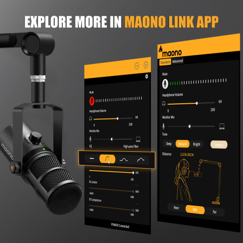 ซอฟต์แวร์ MAONO LINK ปรับเสียงได้ละเอียดยิ่งขึ้น เช่น Gain, EQ, Limiter, Compressor, Monitor Mix และเลือกโทนเสียงกับระยะห่างจากไมค์ได้ตามสไตล์