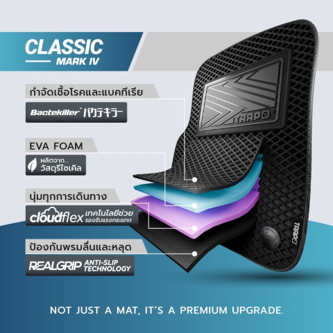 ดักจับโคลนและฝุ่นได้เยี่ยม – โครงสร้างพื้นผิวออกแบบให้กักเก็บโคลน ทราย และเศษดินไม่ให้กระจายไปทั่วห้องโดยสาร ทำให้รถดูสะอาดเป็นระเบียบมากขึ้น