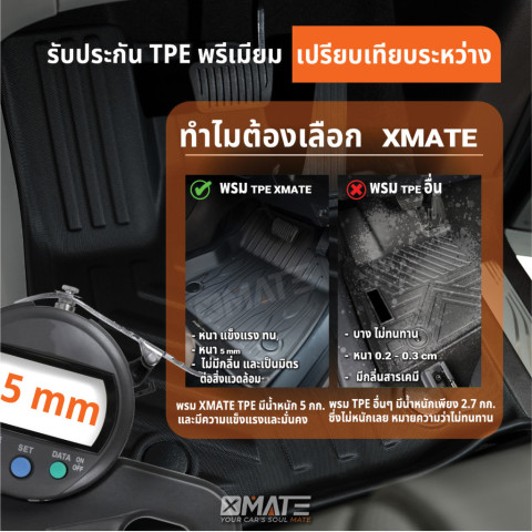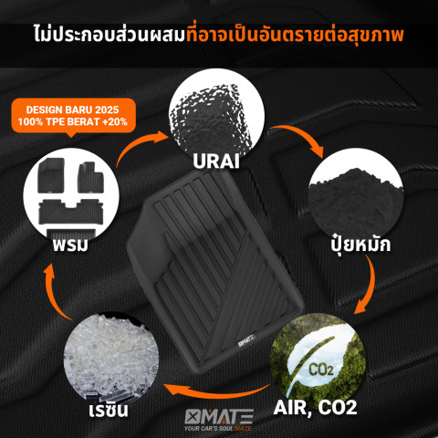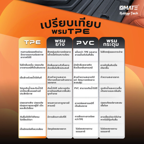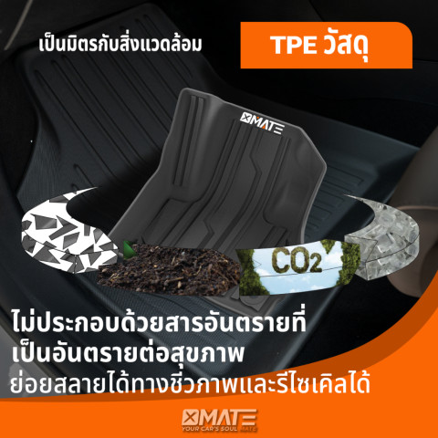 วัสดุ TPE 100% ระดับพรีเมียม กันน้ำ ทนรอยขีดข่วน ไร้กลิ่น ไม่ปล่อยสารรบกวนเมื่อเจอความร้อน เพิ่มความมั่นใจต่อสุขภาพผู้โดยสาร