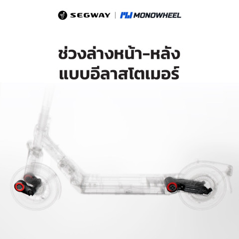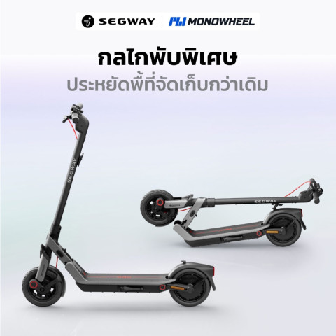 Ninebot eKickScooter E3 สกู๊ตเตอร์ไฟฟ้าสำหรับชีวิตคนเมืองที่ต้องการ “เร็ว คล่อง พับเก็บง่าย” ขี่นุ่มด้วยช่วงล่าง Elastomer หน้า-หลัง พร้อมความแรง มอเตอร์สูงสุด 800W ทำความเร็วได้ถึง 32 กม./ชม. และวิ่งไกลสุด 45 กม./ชาร์จ ตอบโจทย์ทั้งไปทำงาน เดินทางระยะใกล้-กลาง หรือพกขึ้นรถ/เก็บในคอนโดได้สบาย ๆ โดยเป็น เครื่องศูนย์ MONOWHEEL มั่นใจเรื่องบริการและอะไหล่