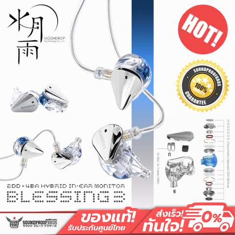 MOONDROP BLESSING3 (2DD+4BA) In-Ear Monitor หูฟังอินเอียร์สาย HI-FI ระดับรีวิวเทพ ที่ให้โทนเสียงใส โปร่ง รายละเอียดชัด เบสคมแน่นมีมิติ เหมาะทั้งฟังเพลงจริงจังและใช้งานทุกวัน มาพร้อมงานประกอบพรีเมียมด้วยเทคโนโลยี 3D Printing เรซินเกรดการแพทย์ และหน้าเพลท CNC ขัดมือสวยสะดุดตา ได้ทั้งคุณภาพเสียงและความพรีเมียมในคู่เดียว