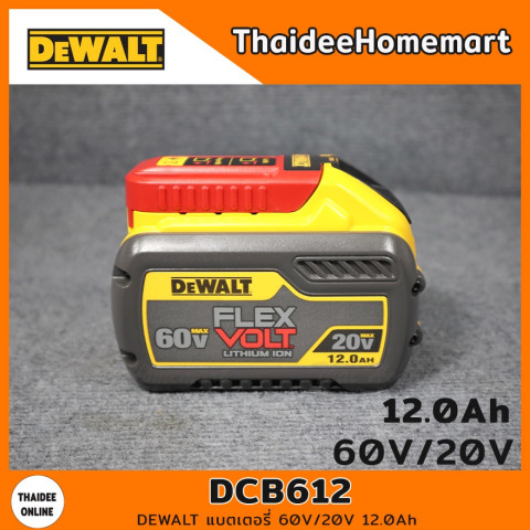 DEWALT แบตเตอรี่ FLEXVOLT® 60V/20V 12.0Ah รุ่น DCB612 (รับประกันศูนย์ 1 ปี) แบตเตอรี่กำลังสูงสำหรับสายงานมืออาชีพ ใช้งานได้ทั้งเครื่องมือ 20V MAX* และ 60V MAX* ด้วยระบบสลับแรงดันอัตโนมัติ ให้พลังต่อเนื่อง เหมาะกับงานหนัก งานช่าง งานติดตั้ง และงานไซต์ที่ต้องการความอึดและแรงแบบจัดเต็ม ในราคา 6,290.00 บาท พร้อมรองรับการ ออกใบกำกับภาษี